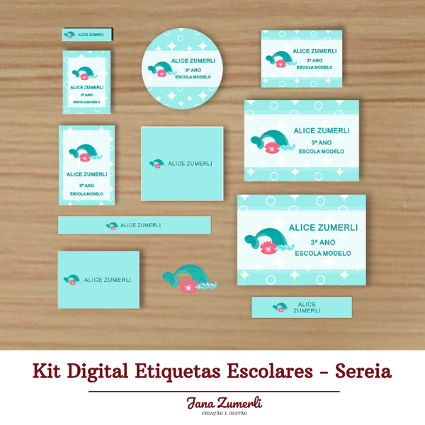 Kit Digital Etiquetas Escolares - Sereia