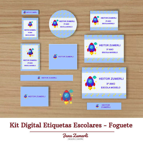Kit Digital Etiquetas Escolares - Foguete
